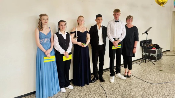 Für die Schülerinnen und Schüler bedankten sich Danijel Mitrovic und Manuel Dütschler für die 9 b, Pauline Gebert und Gesine Schulz für die 10 a und für die 10 b Amy-Lou Cordes und Larissa Schulz bei Lehrkräften, ihren Eltern, Freunden und Klassenkameraden für deren Unterstützung, das entgegengebrachte Vertrauen und die gemeinsam verbrachte Zeit. Sie blickten auf die gemachten Erfahrungen zurück und brachten ihre Erwartungen für die eigene Zukunft zum Ausdruck. Dass dabei auch der Umgang mit ChatGPT eine Rolle spielte, dürfte tatsächlich ein Beweis sein, wie sehr die Schulabgänger/innen den Rat ihrer Rektorin bereits verinnerlicht haben: Was immer die Welt in Zukunft bringt – man muss es nicht alles verstehen, sich aber immer in der Welt zurechtfinden.