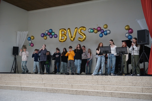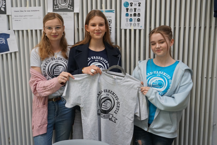 Auch unser neuer Schul-Onlineshop stellte sich vor (siehe Foto unten). Im Rahmen des Wahlpflichtkurses Textiles Gestalten entstand die Idee, einheitliche T-Shirts, Hoodies uvm. mit einem modernen BVS Logo zu gestalten. Den Link zum Shop finden Sie hier: BVS ONLINESHOP
